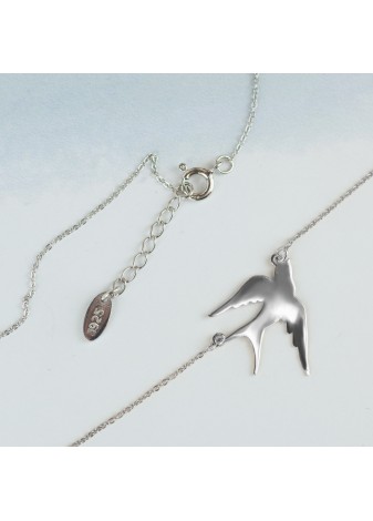 Stylowy naszyjnik z zawieszką w kształcie jaskółki z kolekcji WINGED. Wykonany ze srebra próby 925, rodowany dla lepszej trwałości. Regulowane zapięcie i opcja personalizowanego graweru.