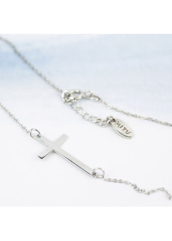 Elegancki naszyjnik z zawieszką w kształcie krzyża, wykonany ze srebra próby 925, rodowany dla zwiększenia trwałości. Polerowany na wysoki połysk, z regulowanym ogniwkowym łańcuszkiem. Darmowy grawer.