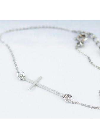 Stylowy naszyjnik z zawieszką w kształcie krzyżyka, wykonany ze srebra próby 925, rodowany i polerowany na wysoki połysk. Regulowany ogniwkowy łańcuszek.