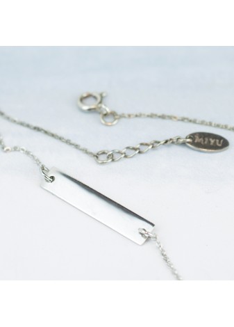 Elegancki naszyjnik z zawieszką w kształcie prostokąta, wykonany ze srebra próby 925, rodowany i polerowany na wysoki połysk. Regulowany ogniwkowy łańcuszek. Darmowy grawer.
