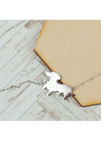Bransoletka z zawieszką w kształcie jamnika z kolekcji ANIMAL. Gładka zawieszka, polerowana na wysoki połysk, wykonana ze srebra próby 925, z opcją graweru gratis.