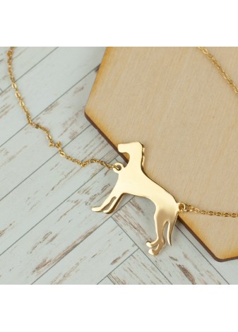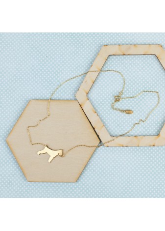 Subtelny naszyjnik z zawieszką w kształcie owczarka/charta, wykonany ze srebra próby 925, pozłacany 24-karatowym złotem. Regulowane zapięcie i możliwość personalizowanego graweru gratis.